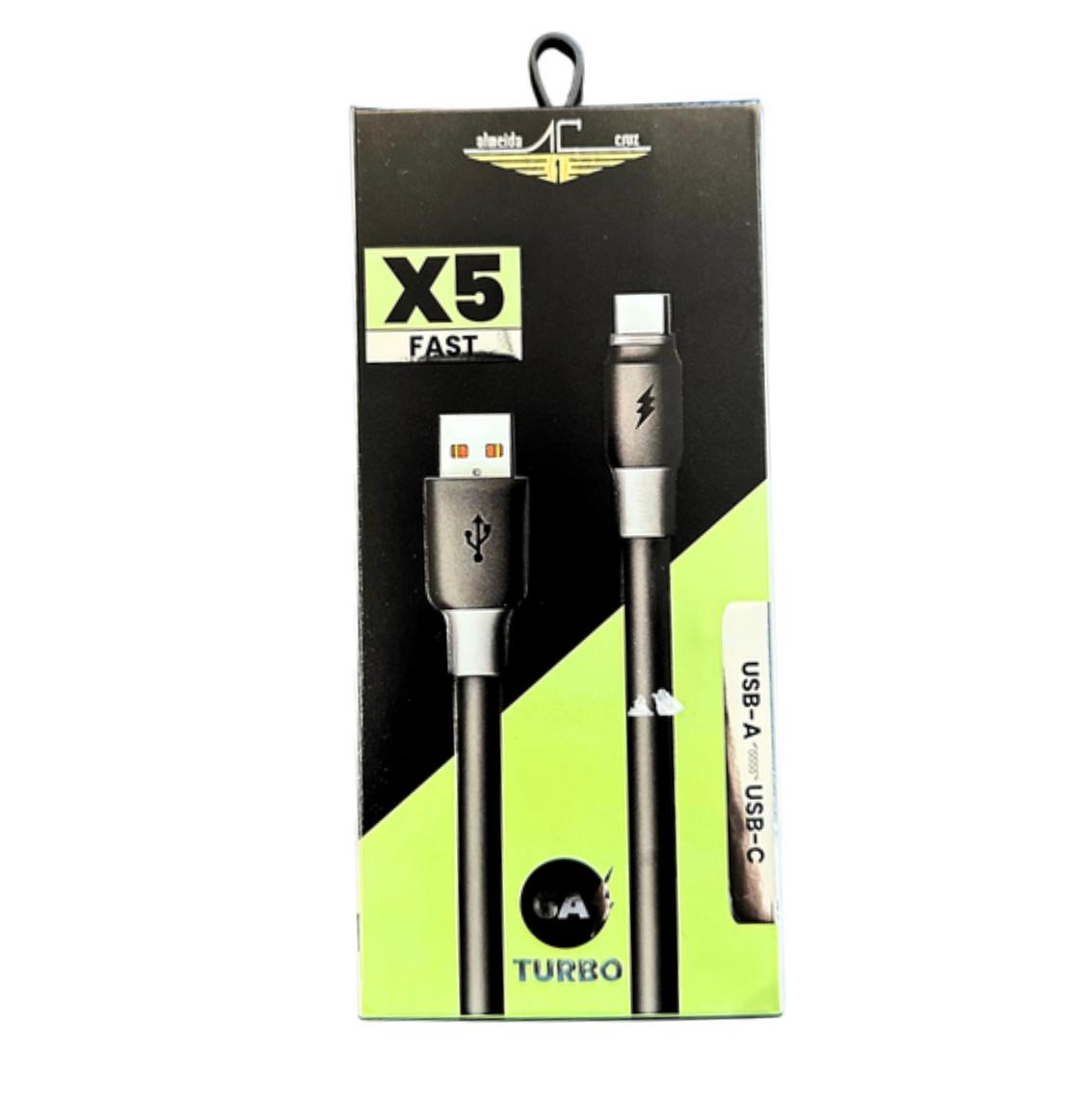 Cabo USB-A / USB-C 6A 1.3M FAST X5 Preto Almeida Cruz
