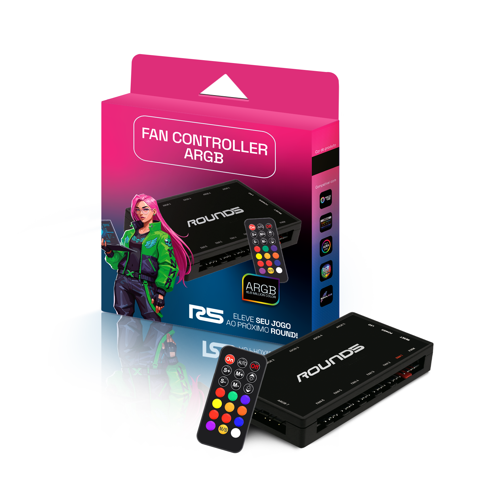 Controladora Hub Fan 6x PWM 7x ARGB com Controle Round5