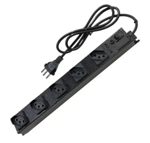 - Modelo: 5 Tomadas Espaçadas com Corpo Metálico e Cabo de 1 metro